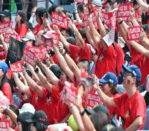 “谢谢你们,谢谢你们这么多年以来的支持。”面对满场呐喊的球迷,费德勒反复表达着自己的感谢。