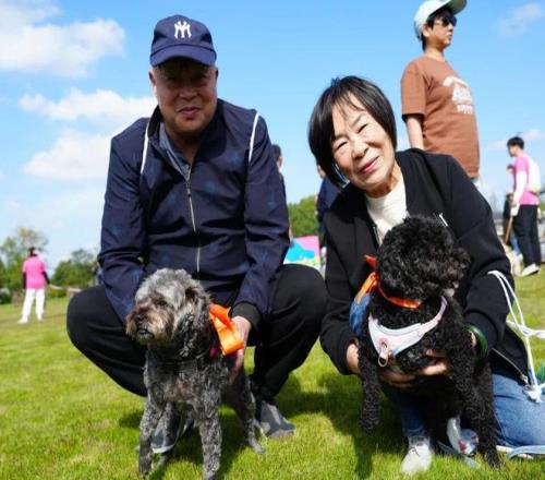 在人群中,有装着小轮车的残疾狗狗,也有正在康复训练中的导盲犬,还有被领养后第一次参加活动的流浪犬。