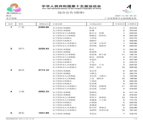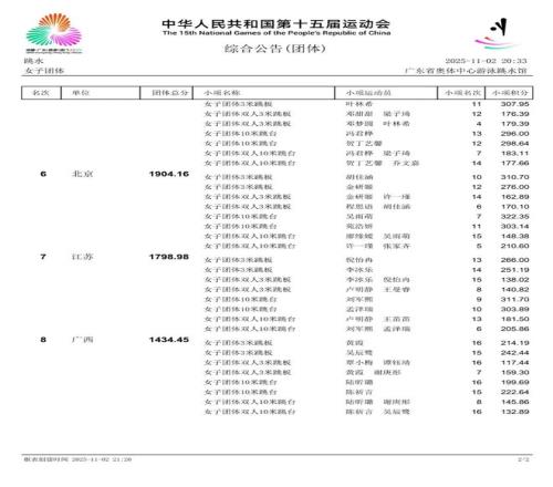 最终广东队总分排名第一,夺得跳水女子团体项目冠军。