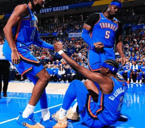 当然,西部也有球队高歌猛进,像是洛杉矶湖人队,尽管赛季初期球队大核心詹姆斯因为坐骨神经痛缺席了很长一段时间,但球队在东契奇和里夫斯的带领下,依旧打出了让人意外的表现,战绩一度冲到西部前二,让人惊叹。而最让人惊叹的,还是上赛季拿下总冠军的雷霆队,当他们主场49分狂胜太阳后,新赛季开局已经豪取24胜1负的队史最佳战绩,与此同时还追平2015-16赛季73胜勇士队,并列NBA历史第一位!