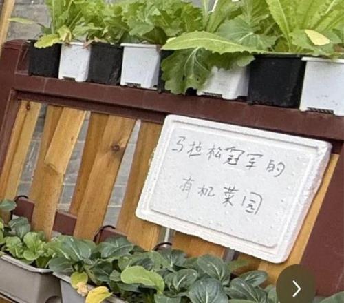门口的小菜园被命名为“马拉松冠军的有机菜园”